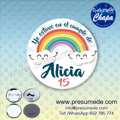 Chapas para cumpleaños «ARCOIRIS, YO ESTUVE EN EL CUMPLE DE…»